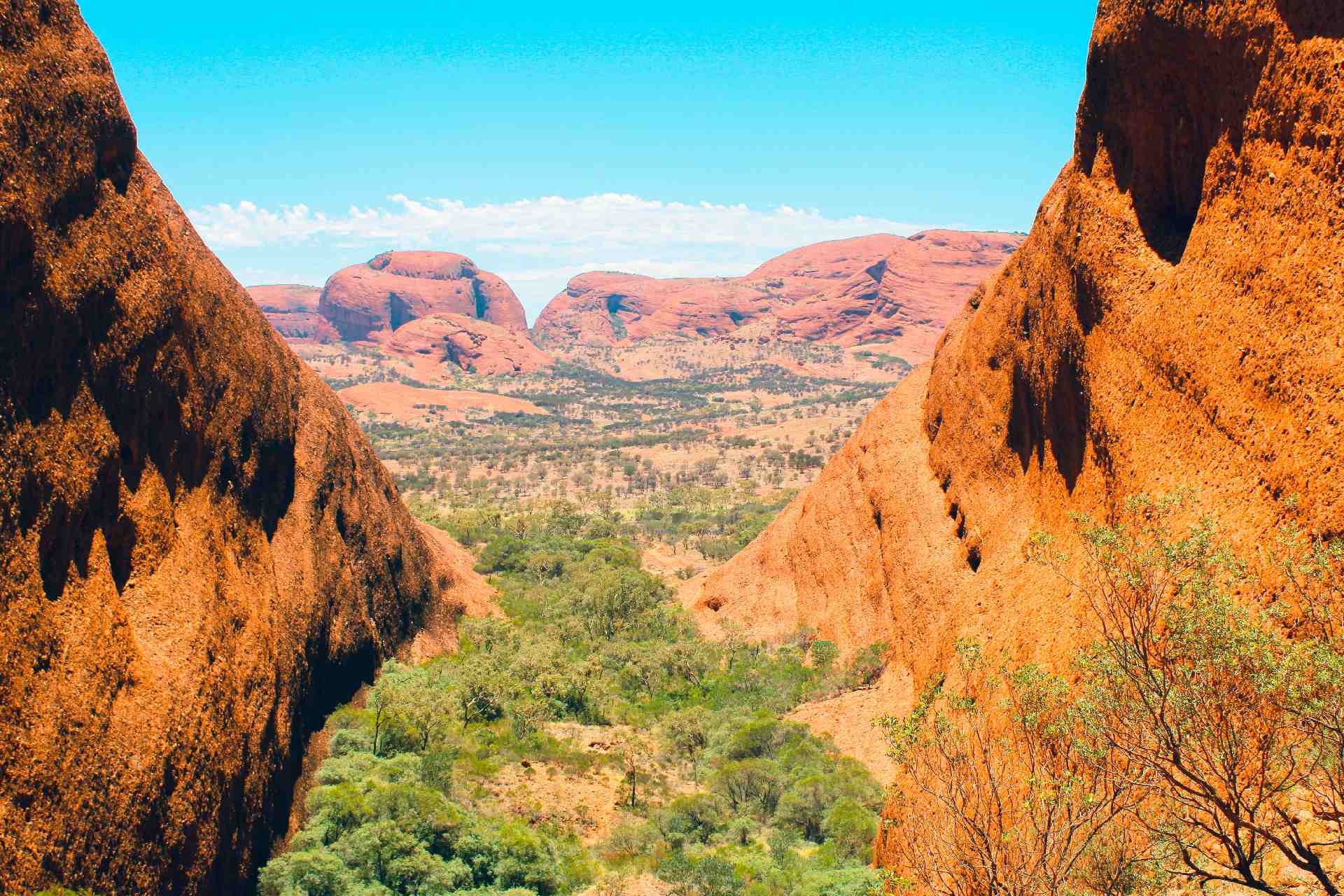 À proximité d’Uluru et faisant partie du même parc, la fameuse « vallée des vents » est à visiter absolument. Nommée Kata Tjuta par les aborigènes et Monts Olga par les Anglais, se dresse cette chaîne de rochers à la couleur rouge vif. Contrairement à Ayers Rocks qu’on visite en contournant le rocher, les Monts Olgas se visitent par l’intérieur à l’occasion d’une randonnée. Très bien aménagée, mais laissant quelquefois des passages légèrement difficiles, cette randonnée est à ne pas manquer car elle offre des paysages majestueux.