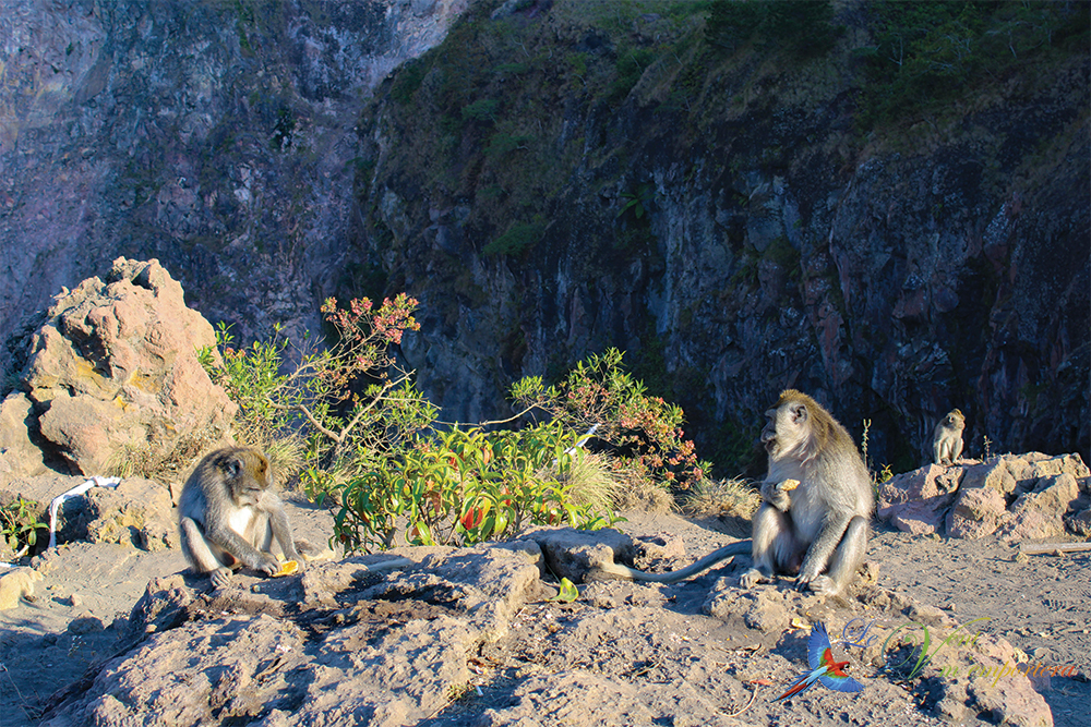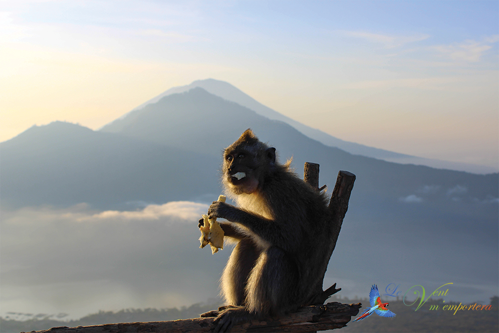 Arrivée au sommet, la vue est juste extraordinaire ! Vous rencontrerez des singes qui viendront certainement vous demander à manger ou à boire. Ils ont vite compris qu’ils pouvaient tirer parti des touristes en haut du volcan !