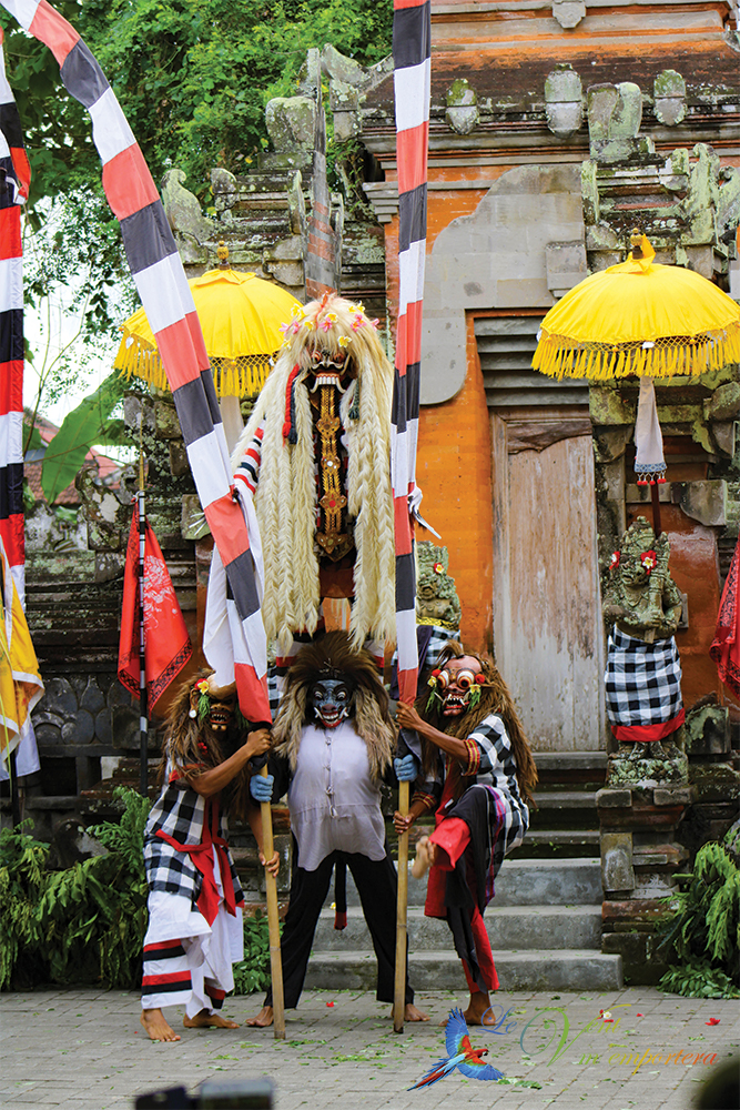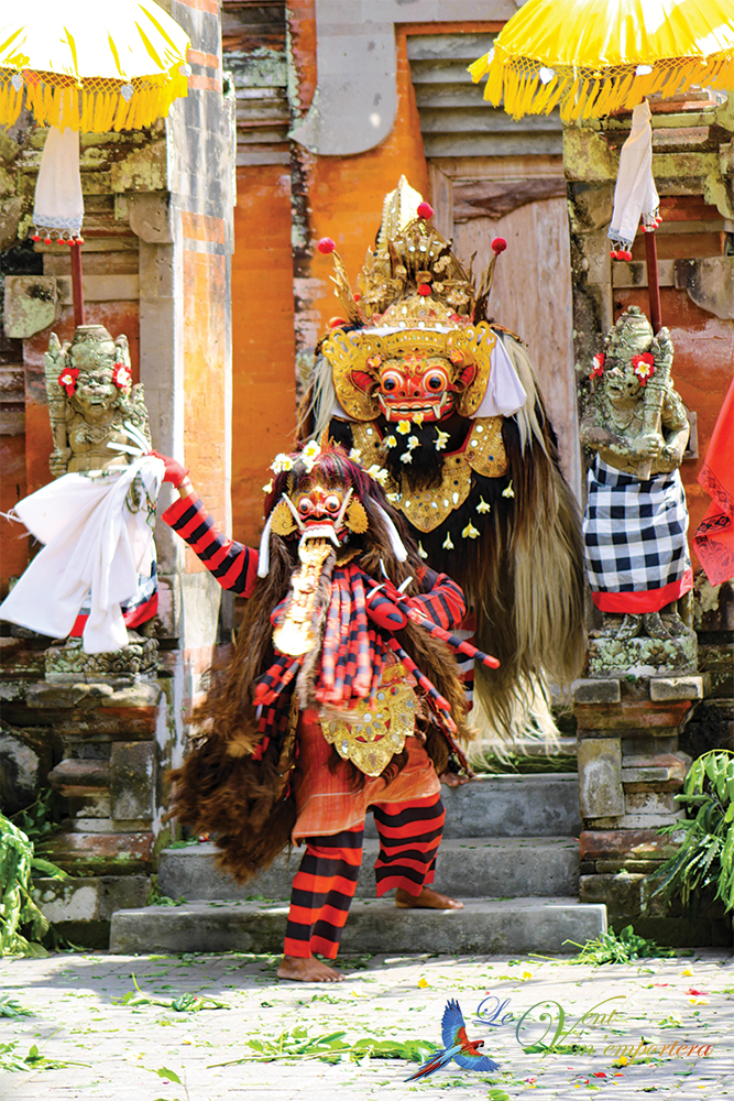 La créature mythique Barong représente le bien et affronte le mal Rangda, la reine des sorcières. D’après la tradition balinaise, le bien et le mal cohabitent. C’est pour cette raison que leur histoire se termine sans vainqueur, mais qui est tout à fait rationnelle.