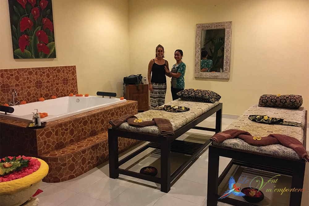 Il s’agit également de l’endroit idéal pour faire une pause et se faire masser. Si vous cherchez un spa, je vous recommande le Putri Bali Spa. L’accueil est ponctué d’une boisson fraîche (cocktail sans alcool) et le départ d’une boisson chaude, qui n’est pas sans déplaire ; cette attention faisant toute une différence. De plus, le massage était excellent.