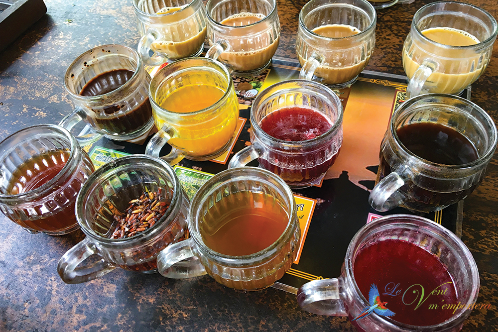 Le salon propose de vous faire découvrir les gammes de café et de thé qu’il possède lors d’une dégustation à la fin du tour. Douze boissons vous sont proposées. Ils sont vraiment super bon ! En revanche, ils ne font pas tester le café mangouste. Vous devrez l’acheter si vous souhaitez le goûter. Leur spécialité est de broyer le café en poudre, de même pour le thé, pour mieux le conserver. Ne soyez donc pas surpris si lors de l’achat vous voyez des paquets en poudre.