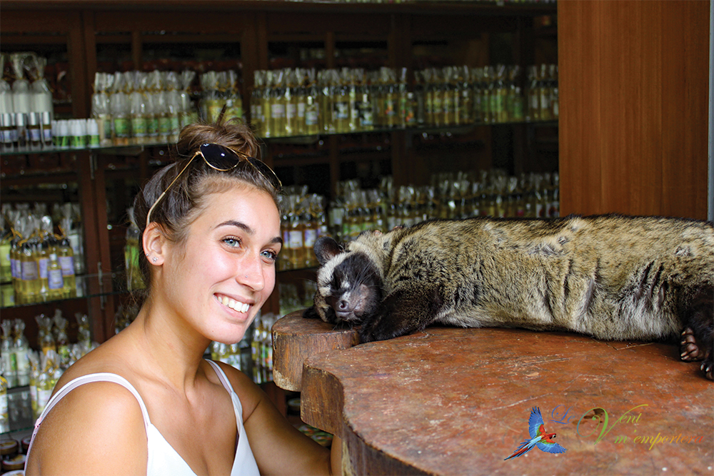 Un circuit est proposé afin de vous expliquer le processus du traitement du café et spécialement du café mangouste. Attention, cela peut heurter certaines personnes… Les mangoustes sont des petits animaux (comme vous pouvez le voir sur les photos) qui adorent manger des fruits, et encore plus du café ! Seulement, ces petites bêtes les rejettent comme elles les mangent. Le personnel ramasse leurs excréments pour les nettoyer et récupérer les graines de café. D’après leurs dires, le café est plus fort en goût, mais également meilleur. Je ne pourrai malheureusement pas vous l’affirmer, car je ne suis pas une consommatrice de café.